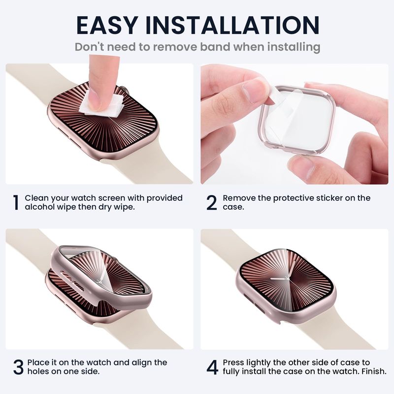 Tensea Paquete de 3 fundas protectoras de pantalla para Apple Watch Series 9, 8, 7, de 1.772