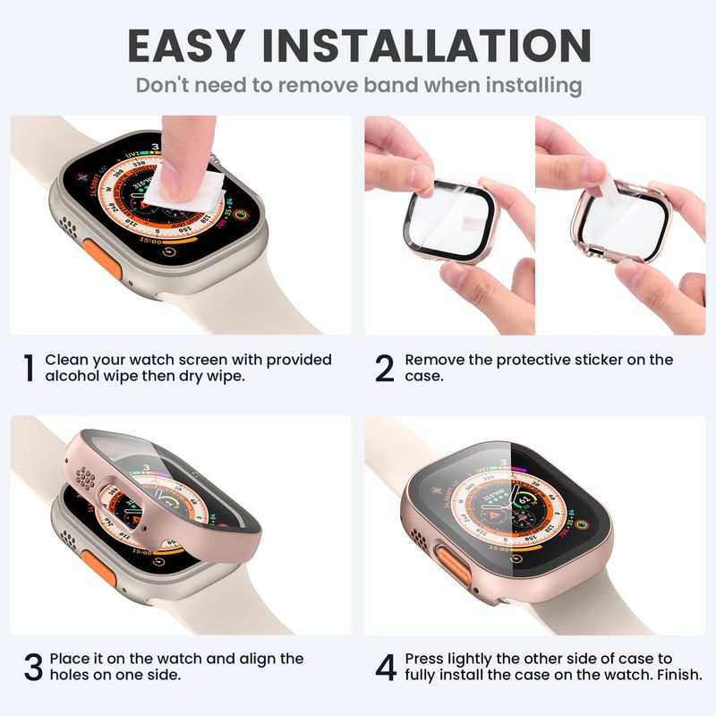 Tensea Paquete de 3 fundas protectoras de pantalla para Apple Watch Series 9, 8, 7, de 1.772