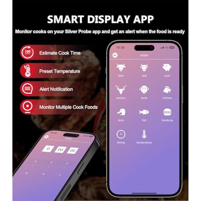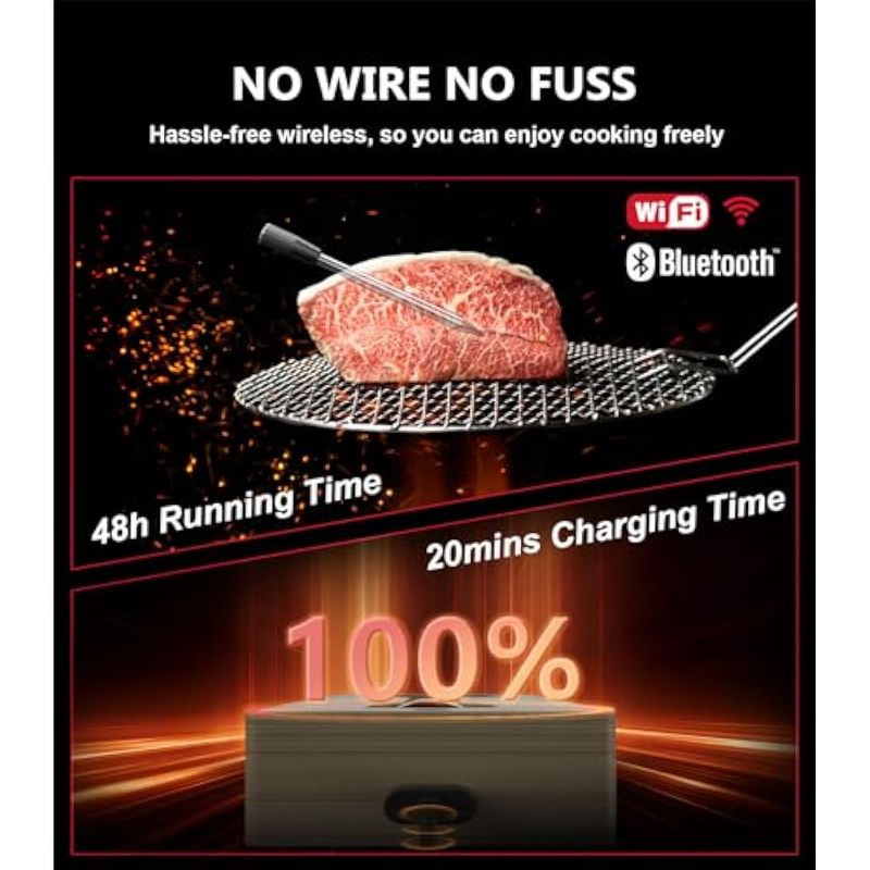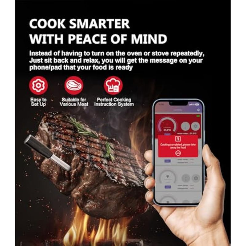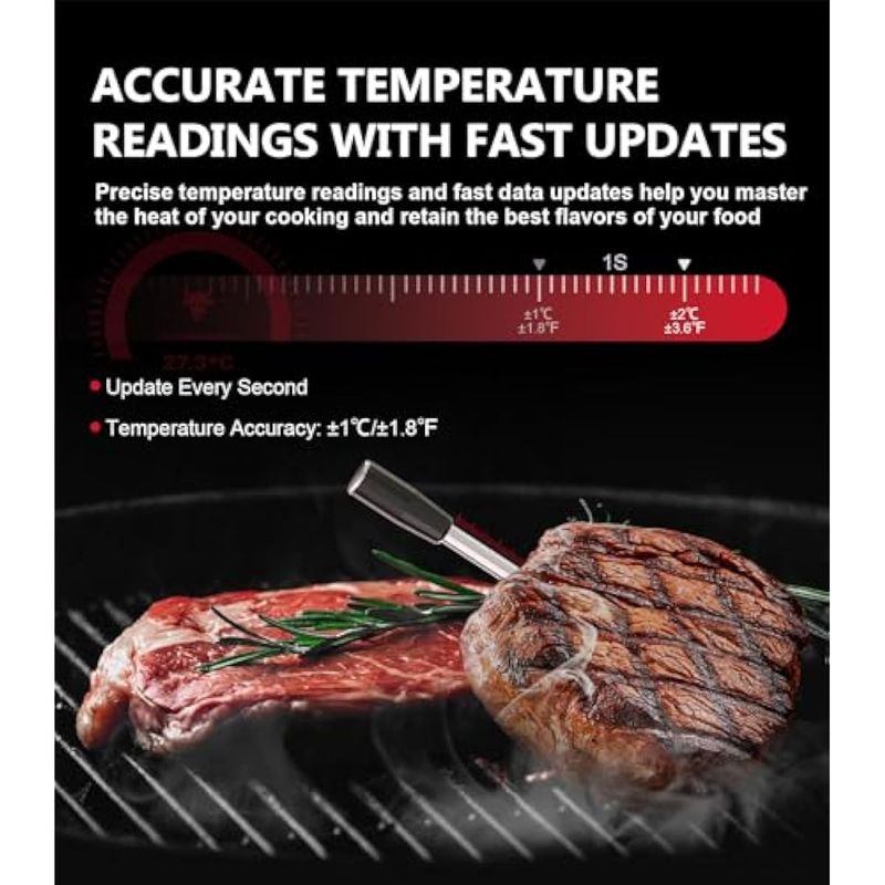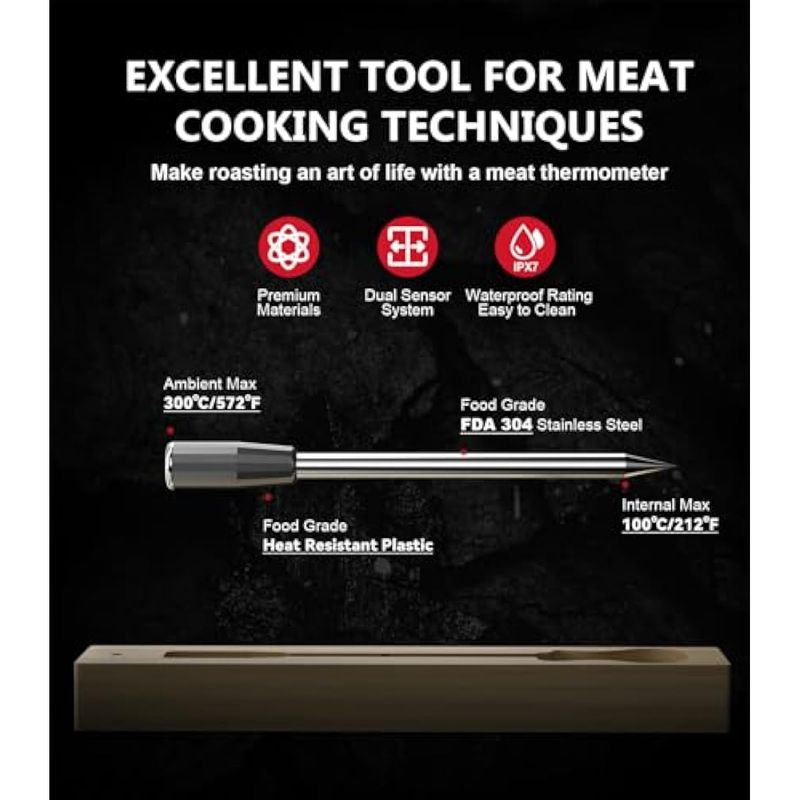 HOGARBAZARUTENSILIOS DE COCINATermómetro inalámbrico para carne Bluetooth: termómetro digital de lectura instantánea de largo
