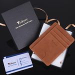 Teskyer Cartera delgada para hombre, bolsillo frontal minimalista con bloqueo RFID, cartera de cuero - Pardo