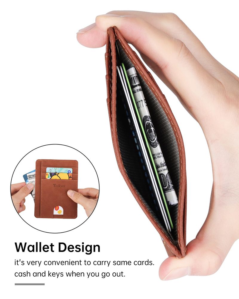 Teskyer Cartera delgada para hombre, bolsillo frontal minimalista con bloqueo RFID, cartera de cuero