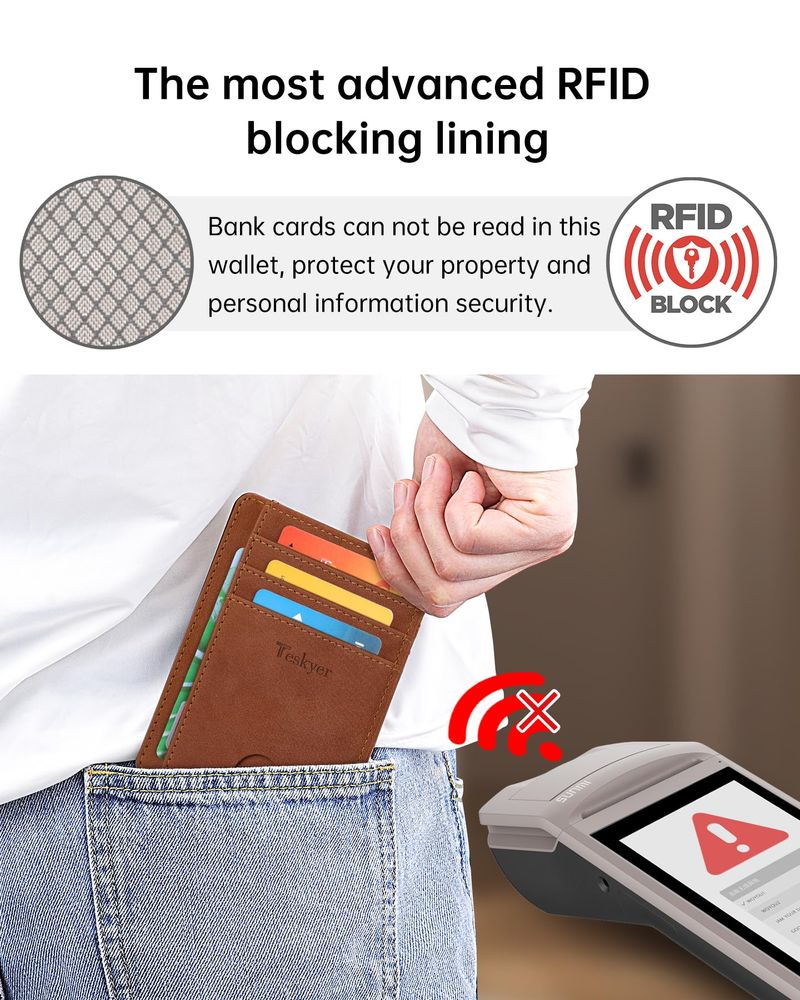 TESKYER CARTERA DELGADA PARA HOMBRE, BOLSILLO FRONTAL MINIMALISTA CON BLOQUEO RFID, CARTERA DE CUERO PARA TARJETAS DE CRéDITO PARA HOMBRES Y MUJERES