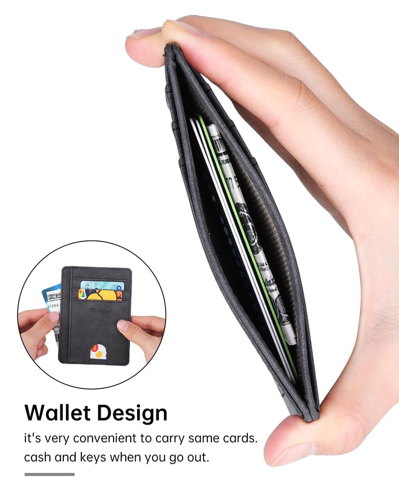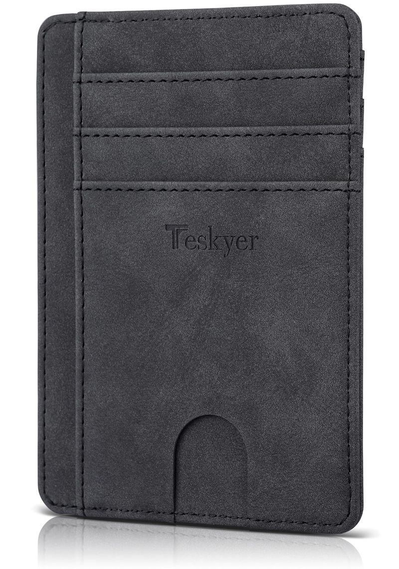 TESKYER CARTERA DELGADA PARA HOMBRE, BOLSILLO FRONTAL MINIMALISTA CON BLOQUEO RFID, CARTERA DE CUERO PARA TARJETAS DE CRéDITO PARA HOMBRES Y MUJERES