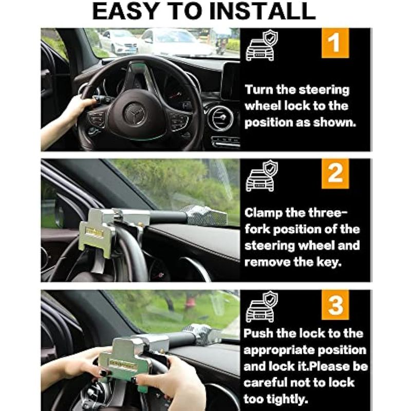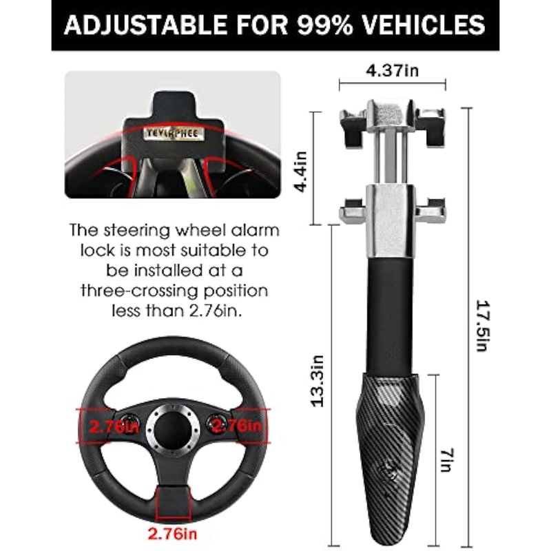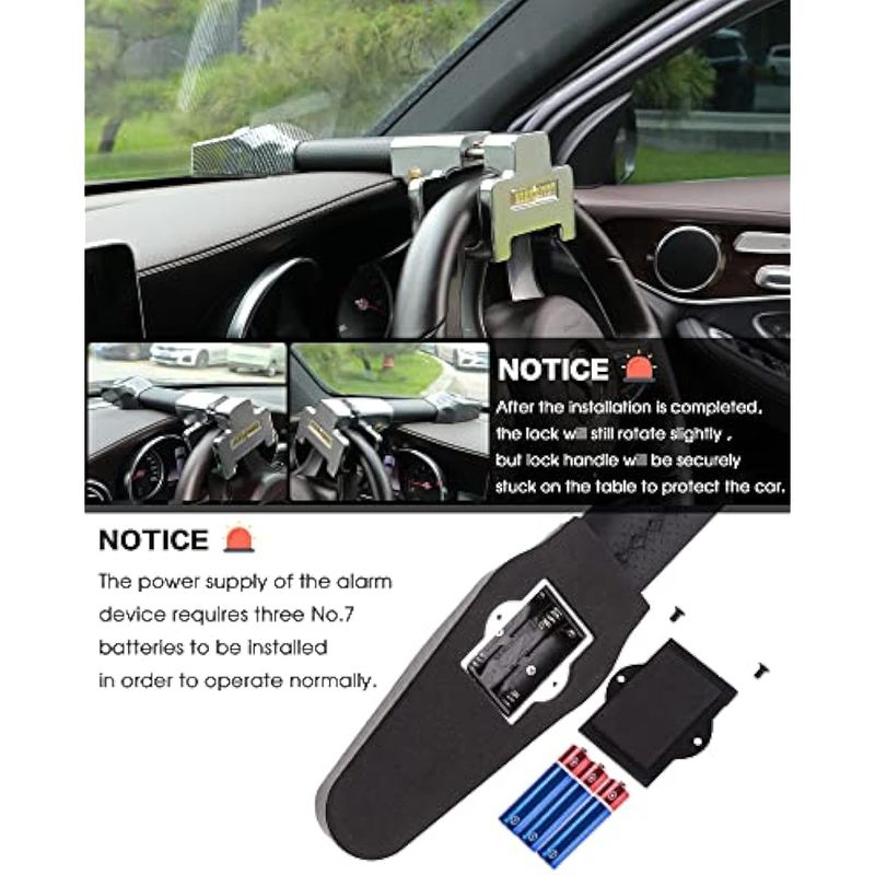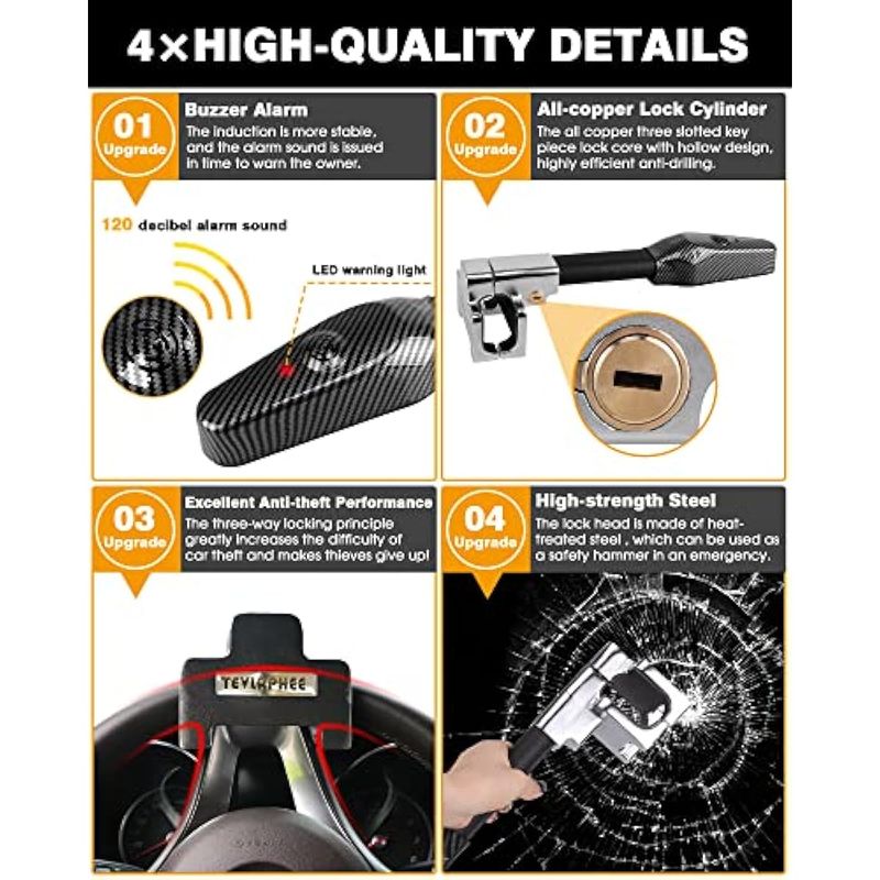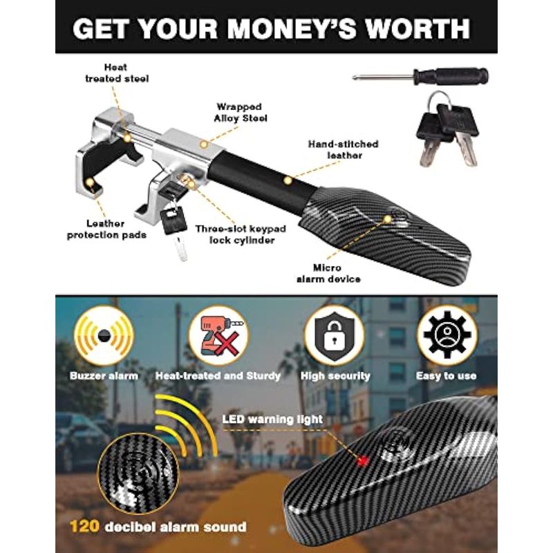 Tevlaphee Cerradura de volante con alarma, dispositivo antirrobo de alta resistencia, bloqueo de