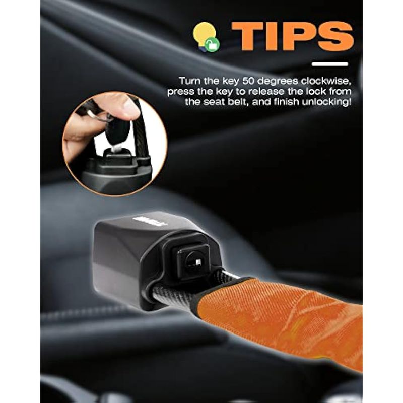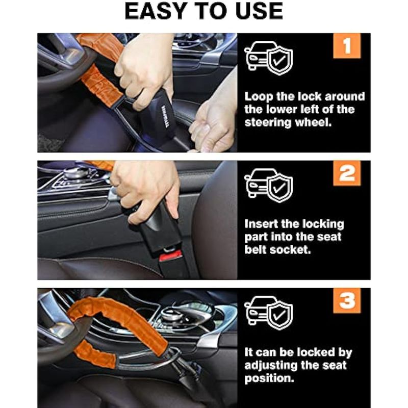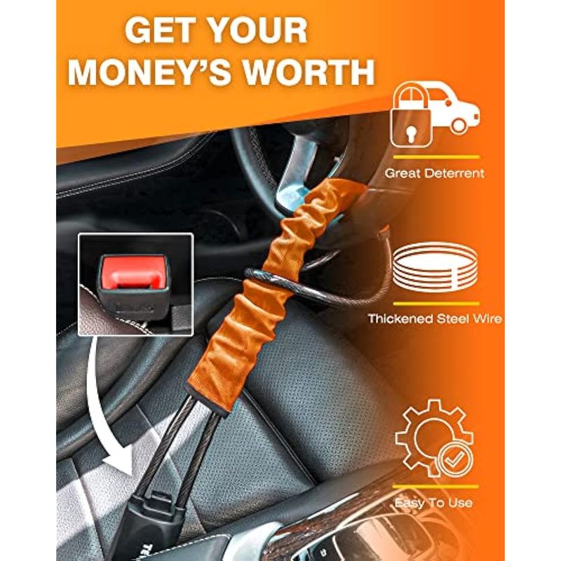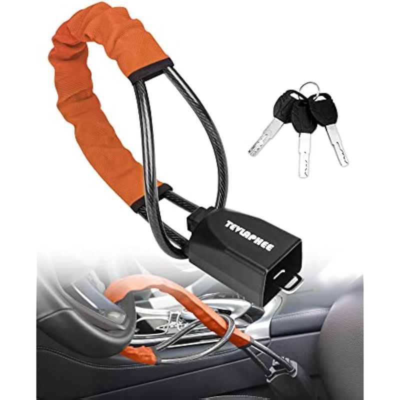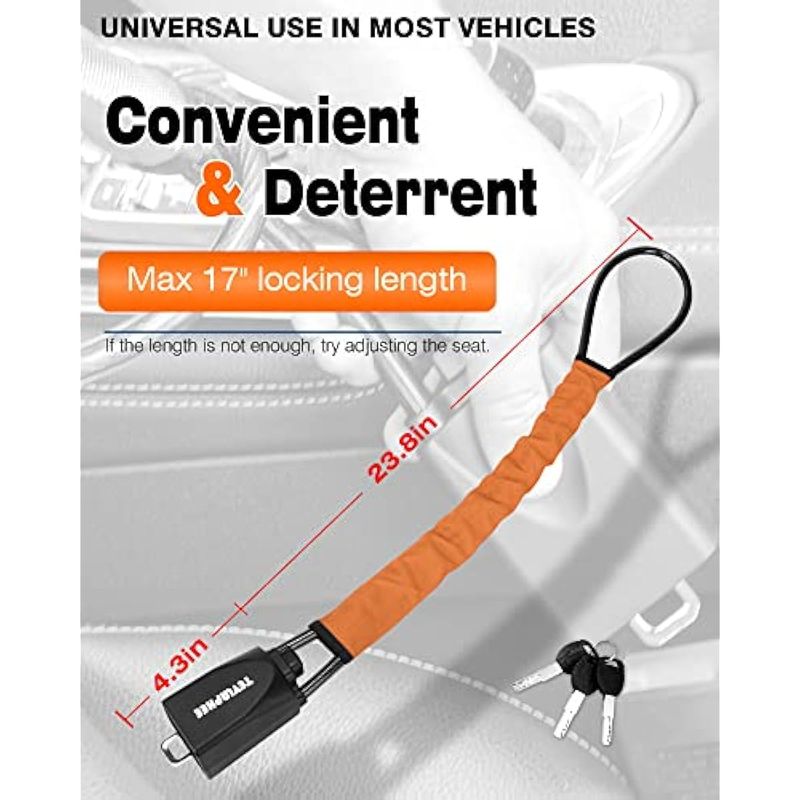 TEVLAPHEE CERRADURA DEL VOLANTE, BLOQUEO DE CINTURóN DE SEGURIDAD, DISPOSITIVO ANTIRROBO UNIVERSAL PARA AUTOMóVIL, BLOQUEO DE AUTOMóVIL, PREVENCIóN DE ROBO DE AUTOMóVIL CON 3 LLAVES PARA SEGURIDAD DEL AUTOMóVIL, SE ADAPTA A LA MAYORíA DE VEHíCULOS, CAMIONES, SUV, CAMIONETA (NARANJA)