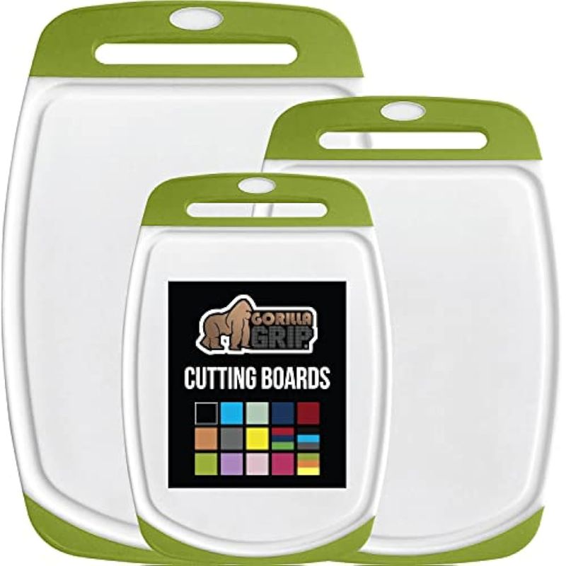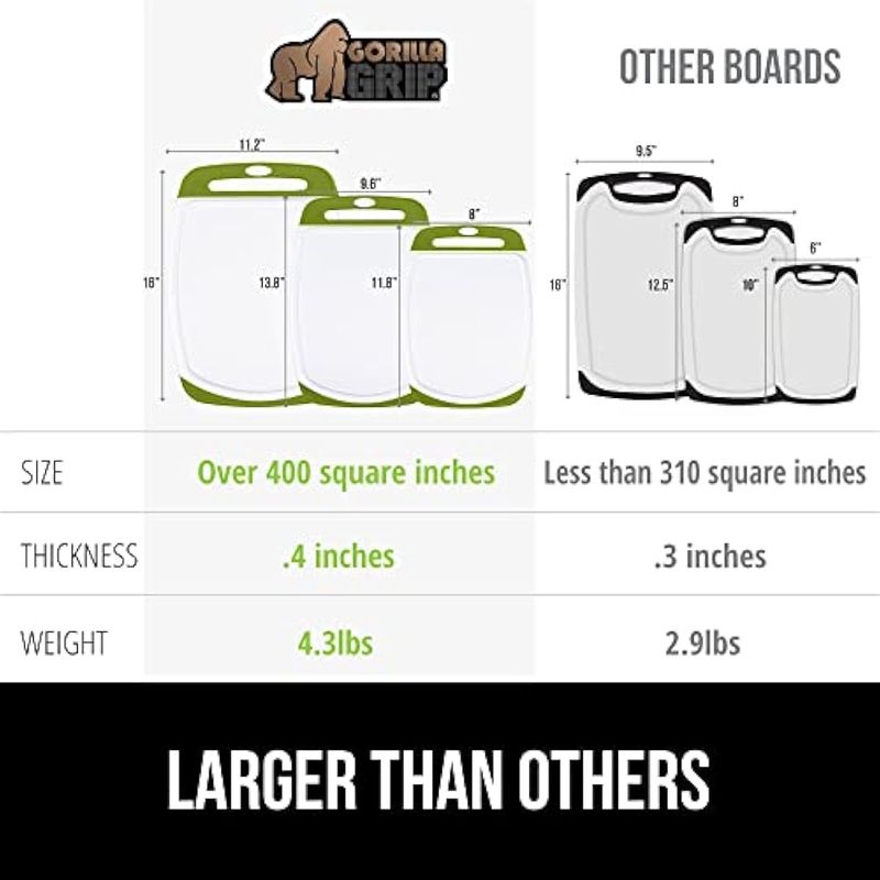 The Original Gorilla Grip - Juego de 3 tablas de cortar de cocina 100% libre de BPA, reversible,