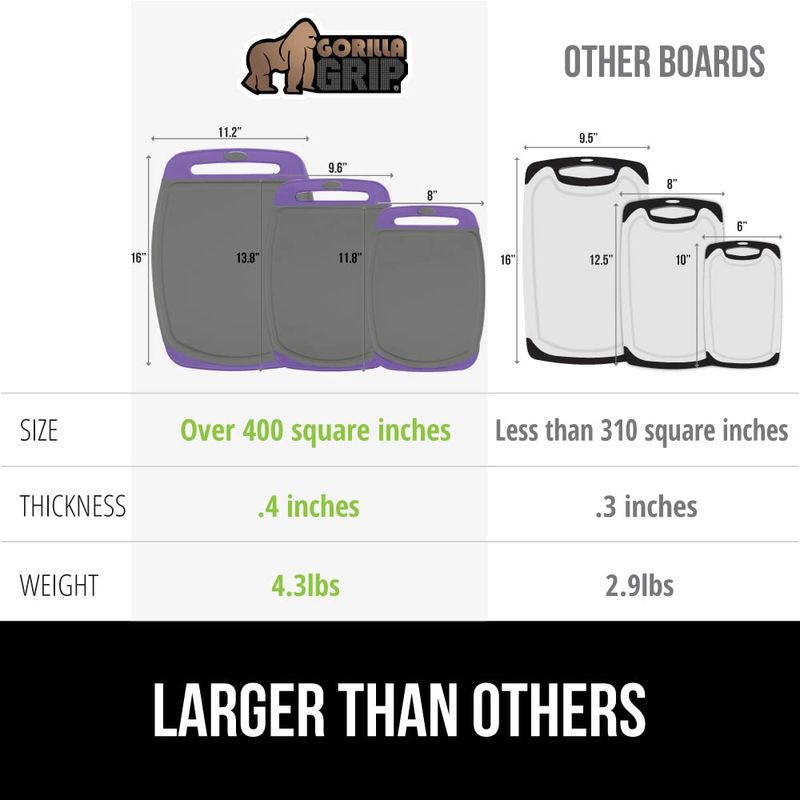 The Original Gorilla Grip - Juego de 3 tablas de cortar de cocina 100% libre de BPA, reversible,