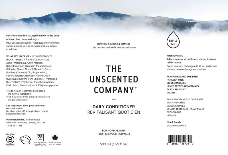 The Unscented Company Acondicionador diario, para todo tipo de cabello, sin fragancia, 16.9 fl oz