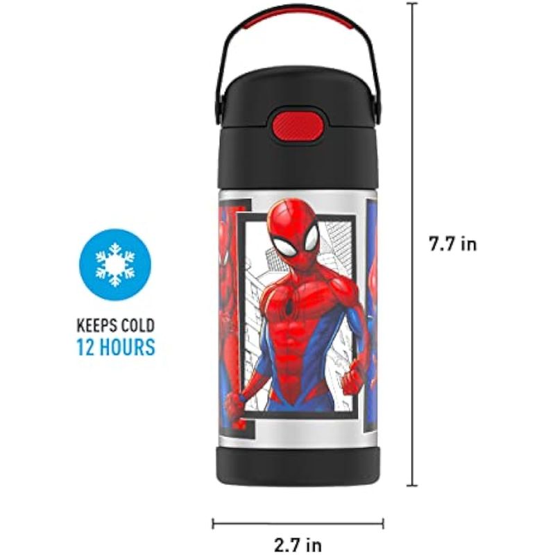 THERMOS FUNTAINER - BOTELLA DE ACERO INOXIDABLE CON AISLAMIENTO AL VACíO Y SORBETE, CAPACIDAD DE 12 ONZAS, PARA NIñOS, SPIDER MAN