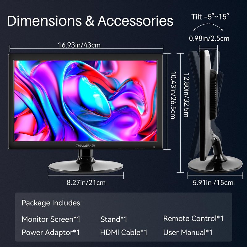 INFORMÁTICAMONITORESThinlerian Monitor de computadora de 17.3 pulgadas, pantalla HD de 1600 x 900, monitor HDMI VGA,