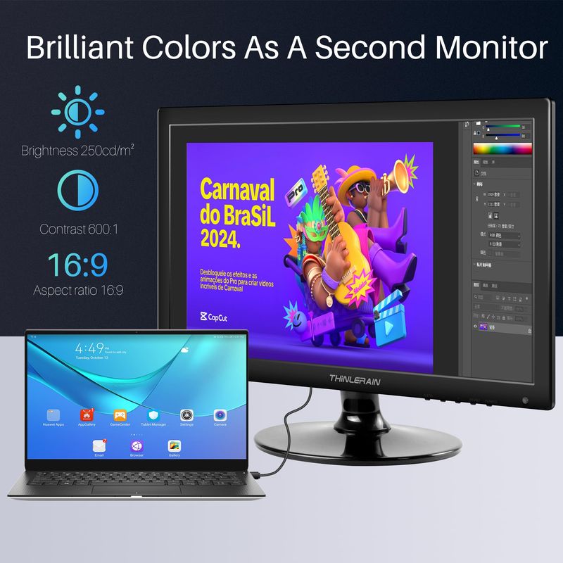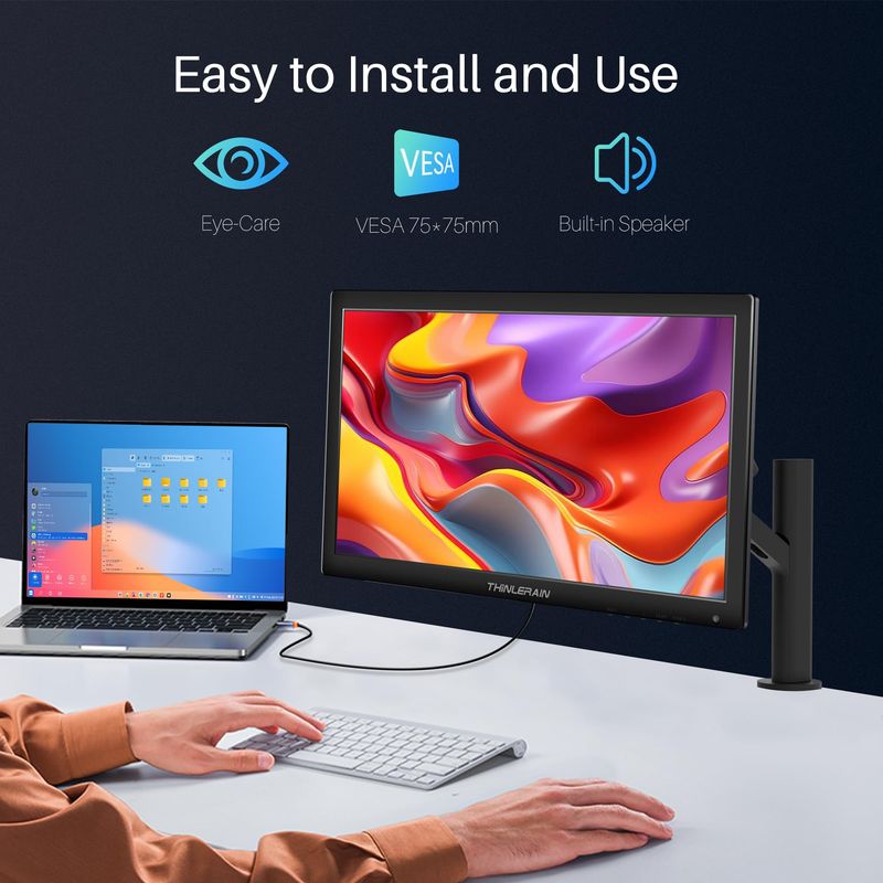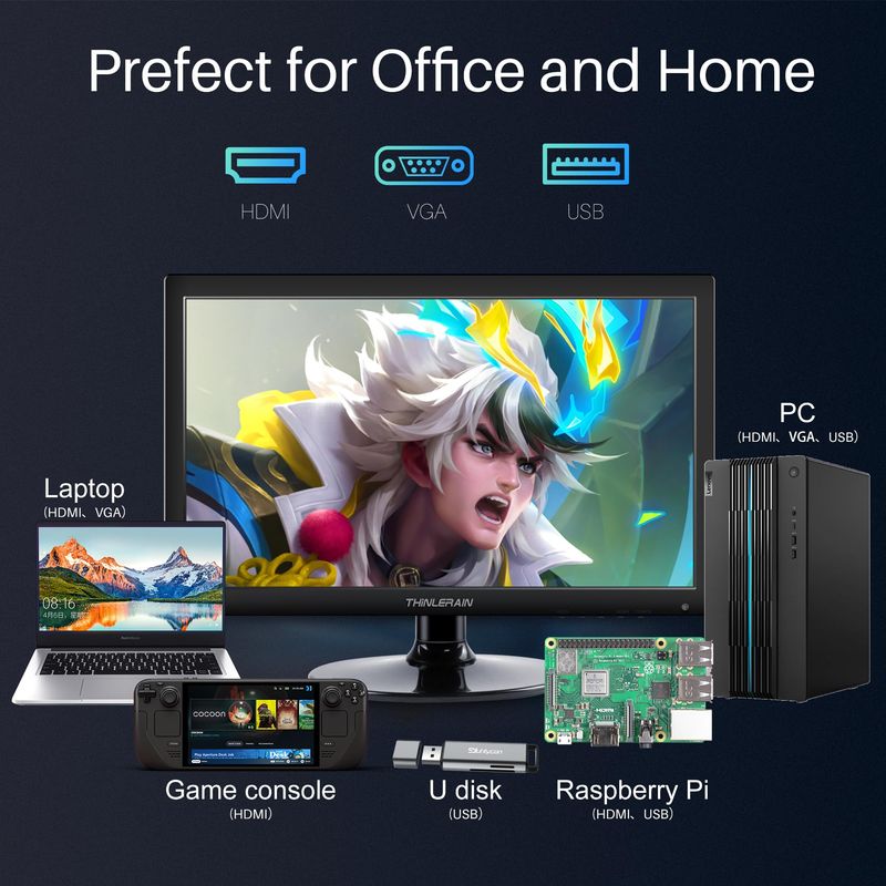 Thinlerian Monitor de computadora de 17.3 pulgadas, pantalla HD de 1600 x 900, monitor HDMI VGA,