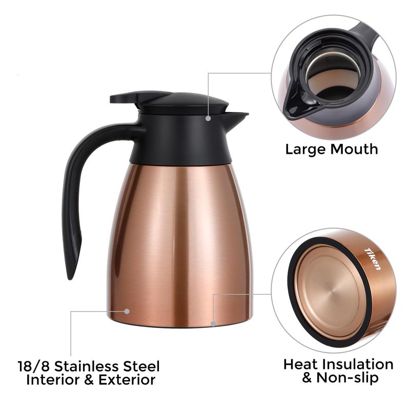 Tiken Jarra térmica de café de 34 onzas, jarras de café al vacío aisladas de acero inoxidable para