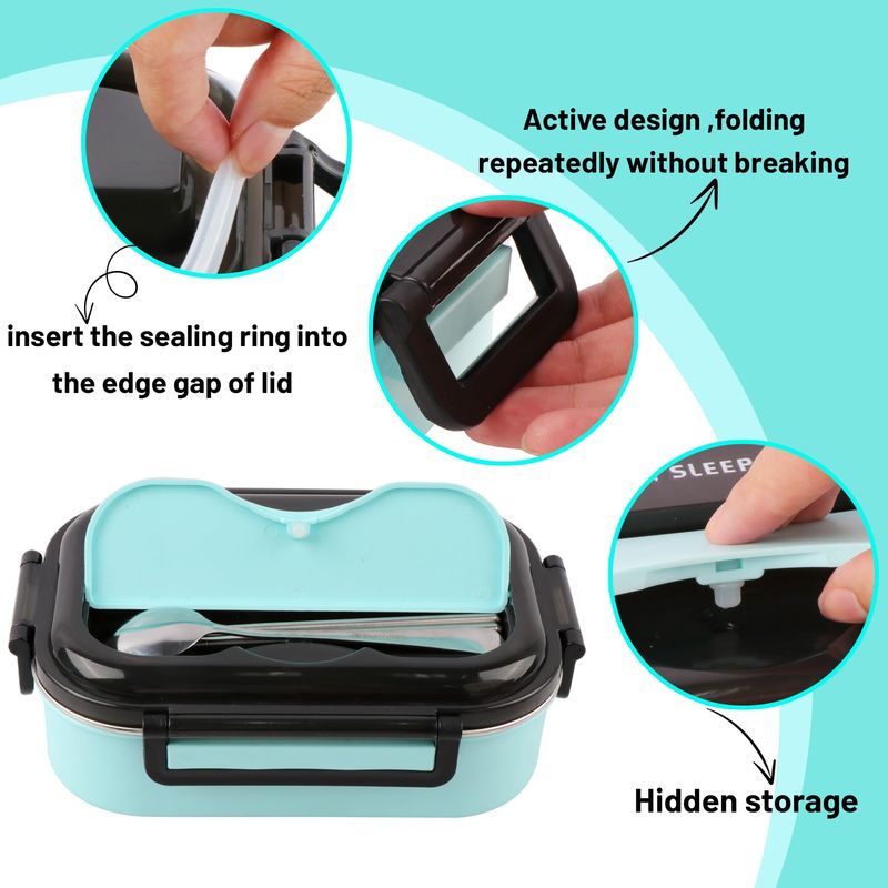 Hecho de acero inoxidable 304, este es el mejor recipiente para empacar alimentos saludables para llevar. Materiales contactables con alimentos, fiables y duraderos, pueden garantizar la salud de usted y su familia. forrado con un anillo de silicona sellado, que puede garantizar que la comida no gotee. Fácil de usar, lavar y almacenar.
