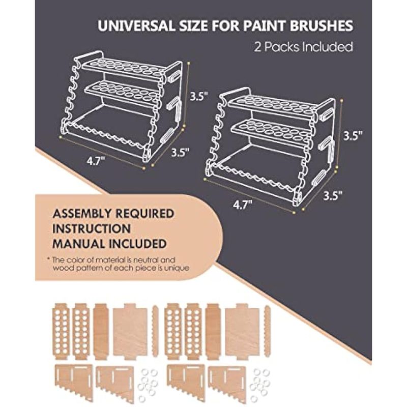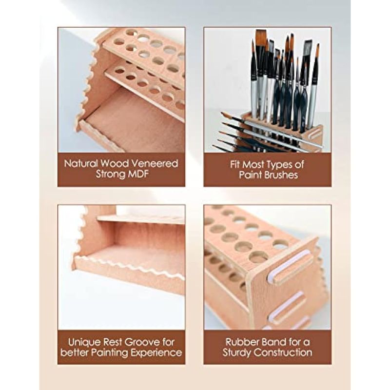 tinctor Organizador de pintura de madera y soporte para pinceles de pintura, para 44 botellas y 44
