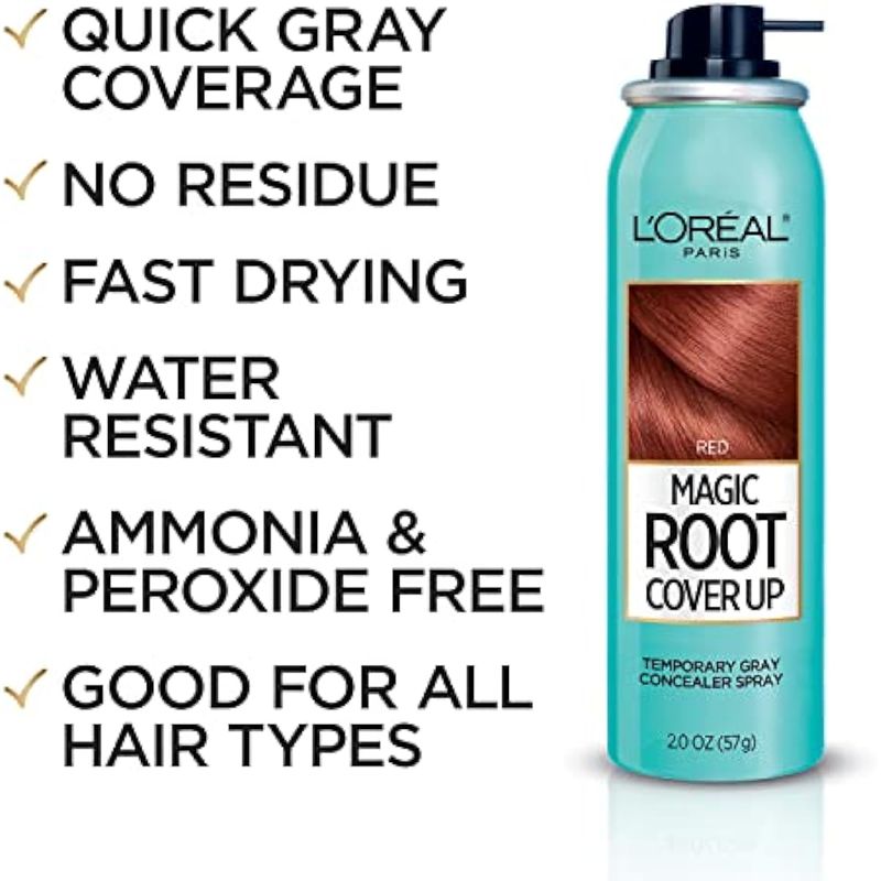 ¿Necesitas un retoque rápido de raíz para cubrir las canas? Prueba Magic Root Cover Up. Este spray de color temporal para el cabello es nuestra forma más rápida de cubrir el gris y funciona en cualquier textura o tipo de cabello, incluido el cabello sintético. En solo 3 segundos, las raíces grises se ocultan con nuestra fórmula ligera de secado rápido, sin dejar manchas ni residuos pegajosos cuando están secas. Una aplicación durará hasta su próximo champú, además de que está libre de amoníaco y peróxido, y no contiene tintes sintéticos. Magic Root Cover Up está disponible en una paleta de ocho tonos que se pueden utilizar en cabello negro, cabello castaño, cabello rubio e incluso cabello rojo. El embalaje puede variar. Lo que reciba puede no ser lo que se refleja en el sitio.