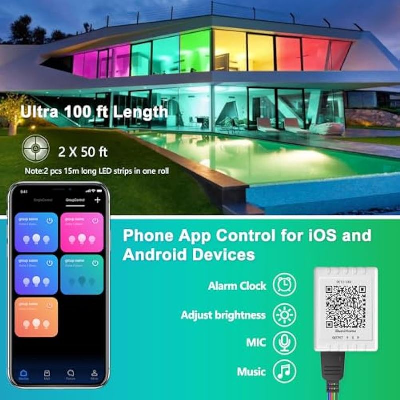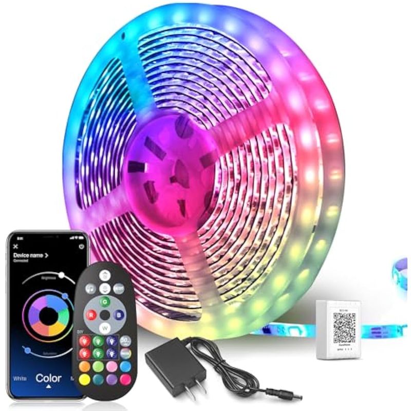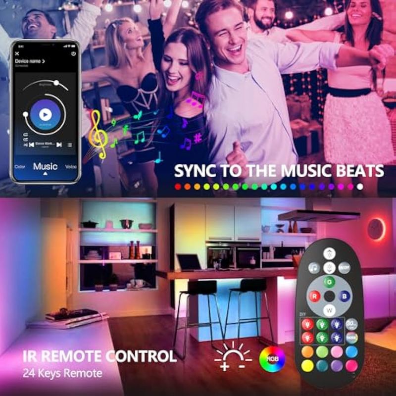 HOGARBAZARILUMINACIONTira de luces LED de 65.6 pies, ultralarga con sincronización de música, control de aplicaciones con
