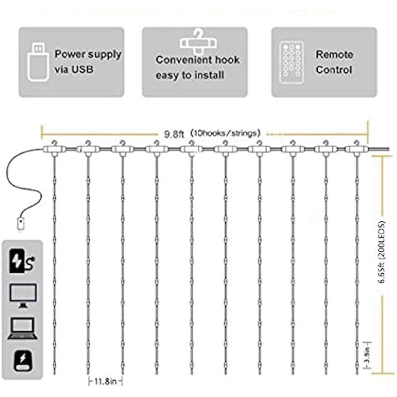 Tira de luces LED RGB de 200 luces LED RGB con 8 modos de control de decoración para ventana, hogar,