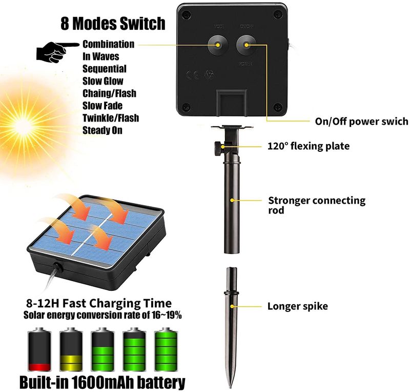 Tira de luz solar de 10 m, 100 luces, impermeable IP65, para exteriores, LED, con alambre de cobre,