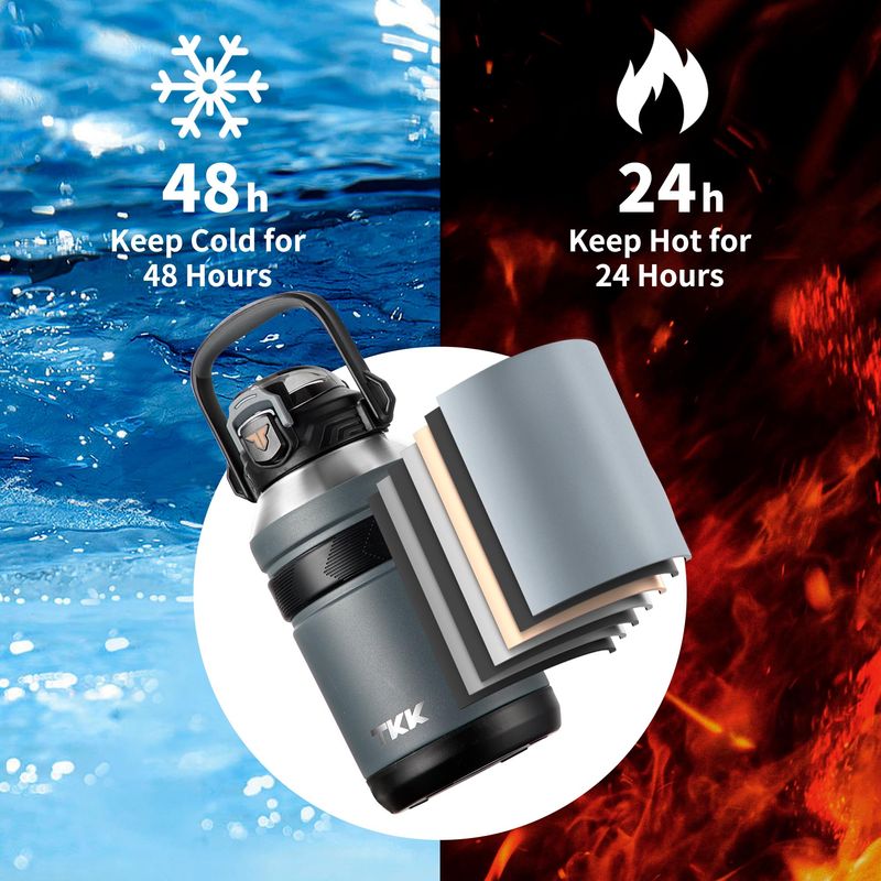 TKK BOTELLAS DE AGUA AISLADAS GRANDES DE 50 ONZAS CON PAJILLA, BOTELLA DE AGUA DE METAL DE ACERO INOXIDABLE DE MEDIO GALóN, BOTELLA DE VACíO PARA VIAJES AL AIRE LIBRE, CAMPING, CAFé, LíQUIDOS CALIENTES Y FRíOS HASTA 24 HORAS