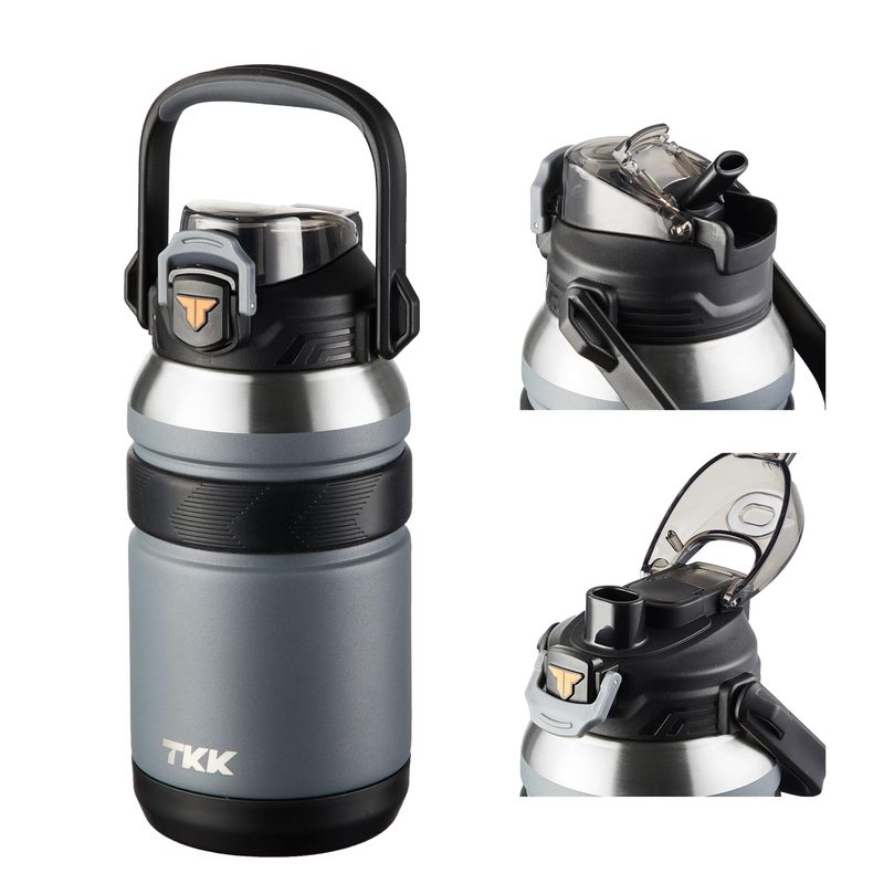 ? Diseño práctico: la botella aislada TKK de 3250 onzas es muy cómoda de transportar y cuenta con un asa envuelta en silicona que proporciona un agarre cómodo incluso cuando se sostiene durante mucho tiempo. Además, viene con una correa de hombro desmontable y ajustable que te permite llevar la botella en la espalda. La correa ajustable puede adaptarse a personas de todas las alturas.