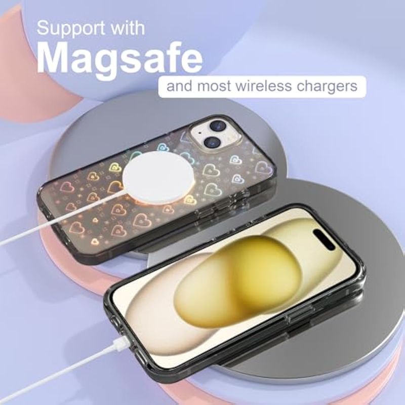 Diseño holográfico del corazón: Dependiendo de la luz y el ángulo, el color cambiará en consecuencia, mostrando un color similar al arco iris, que es muy impresionante. Y el patrón de corazón está dentro de la funda para que nunca se caiga