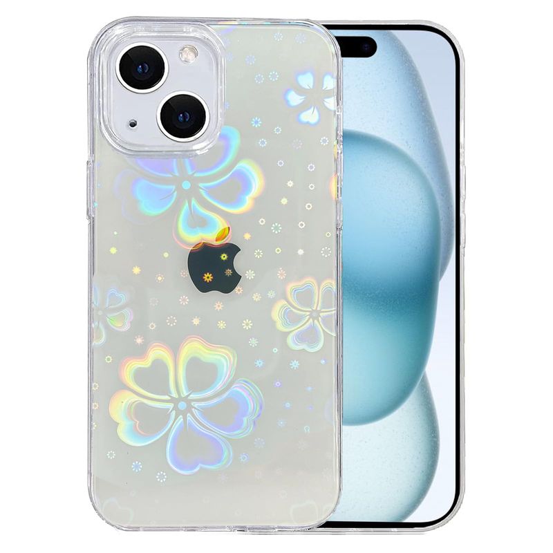 Tksafy Funda compatible con iPhone 15, transparente con purpurina linda, patrón holográfico de