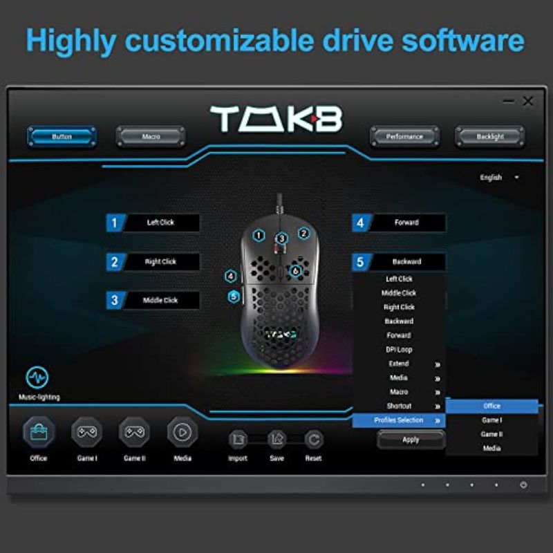 INFORMÁTICAACCESORIOS DE INFORMATICAMOUSETMKB Falcon M1SE - Mouse ultraligero para juegos de panal de abeja, sensor óptico de alta precisión