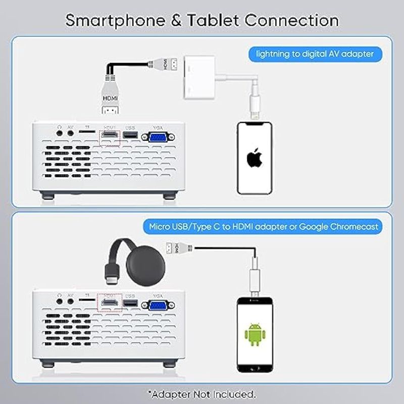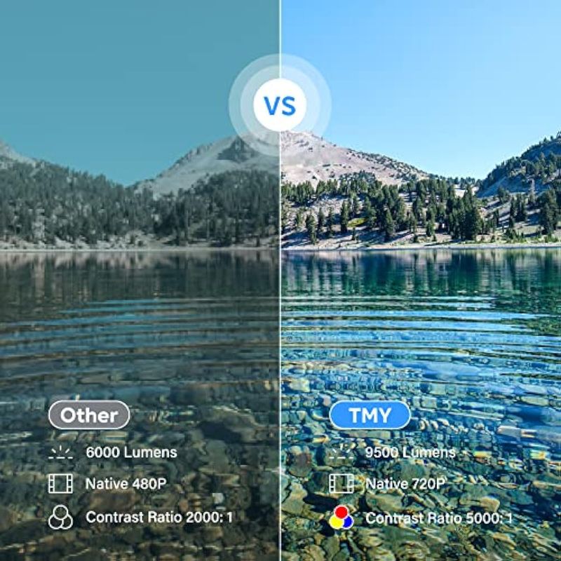 TMY Mini proyector, proyector Bluetooth mejorado de 9500 lúmenes con pantalla de 100 pulgadas,