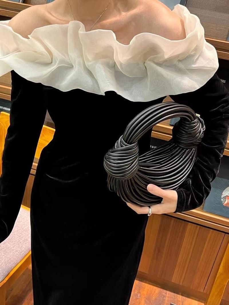 Tngan Bolso tejido de PVC para mujer, bolso de cuero creativo, estilo fideos, bolso cruzado de moda