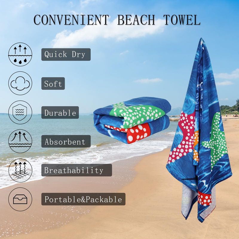 TOALLA DE PLAYA DE MICROFIBRA DE SECADO RáPIDO PARA EXTERIORES, VIAJE, ALBERCA, NATACIóN, YOGA, PíCNIC; TAMAñO GRANDE CON PATRóN IMPRESO, SúPER ABSORBENTE Y SIN ARENA, PARA ADULTOS Y ADOLESCENTES