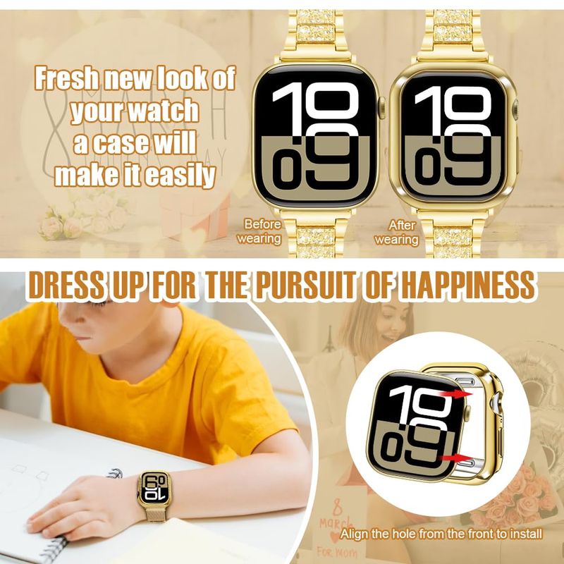 Compatible con Apple Watch de 1.575 pulgadas, solo compatible con Apple Watch de 1.575 in; ligera, no añade volumen en la muñeca. Solo funda, no incluye Apple Watch, no utilizar con vidrio templado junto