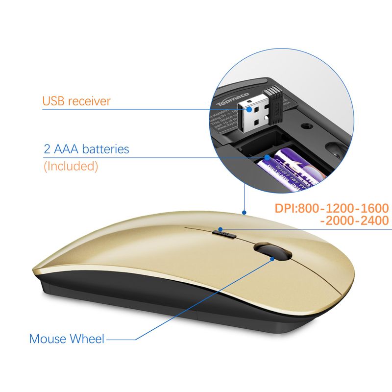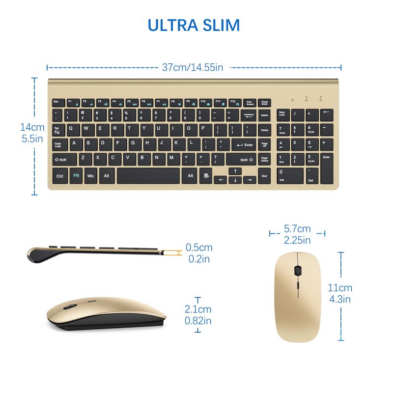 Topmate, mouse USB inalámbrico ultradelgado portátil y teclado inalámbrico (Negro/ blanco), Blanco