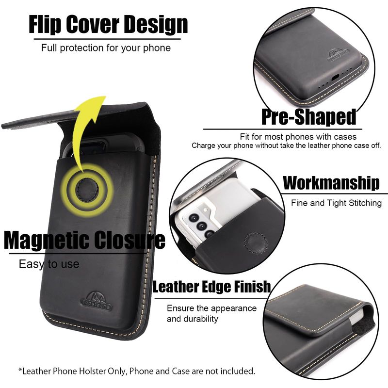 Topstache Funda de cuero para teléfono con clip para cinturón, funda para teléfono celular con tapa