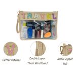 TOPTTANBO BOLSA TRANSPARENTE DE CHENILLA CON LETRAS, MULTIUSOS, TRANSPARENTE, IMPERMEABLE, PARA APERITIVOS, MAQUILLAJE, CON CORREA PARA LA MUñECA