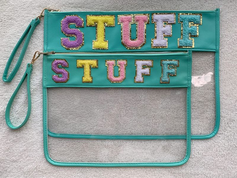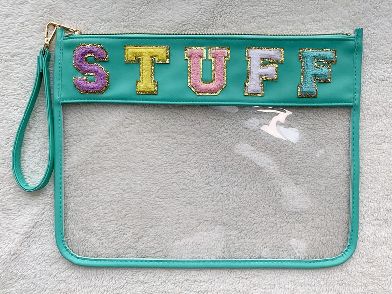 TopTTanBo Bolsa transparente de chenilla con letras, multiusos, transparente, impermeable, para