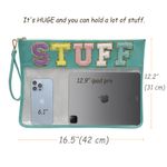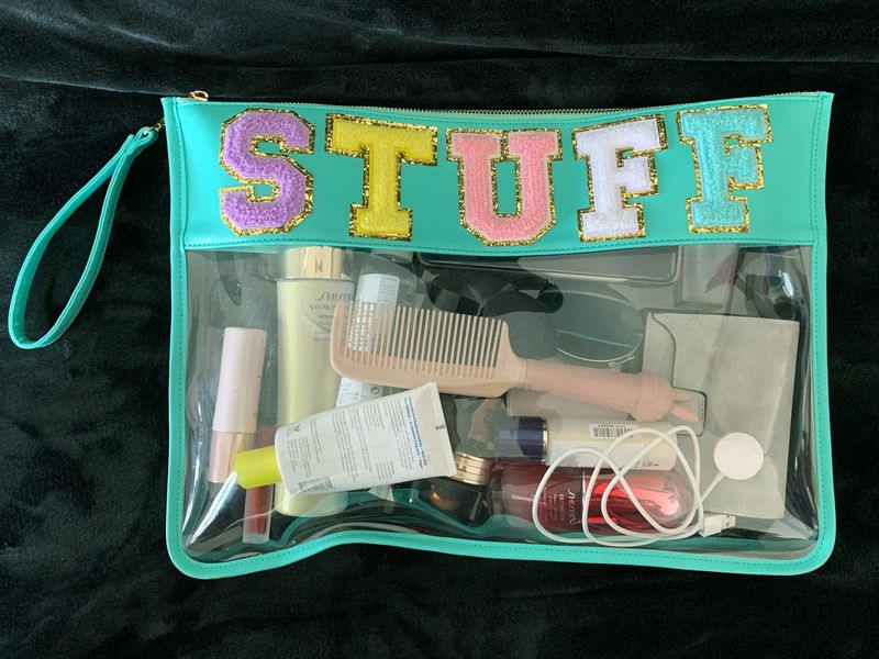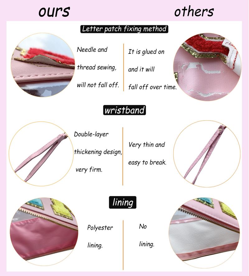 TOPTTANBO BOLSA TRANSPARENTE DE CHENILLA CON LETRAS, MULTIUSOS, TRANSPARENTE, IMPERMEABLE, PARA APERITIVOS, MAQUILLAJE, CON CORREA PARA LA MUñECA