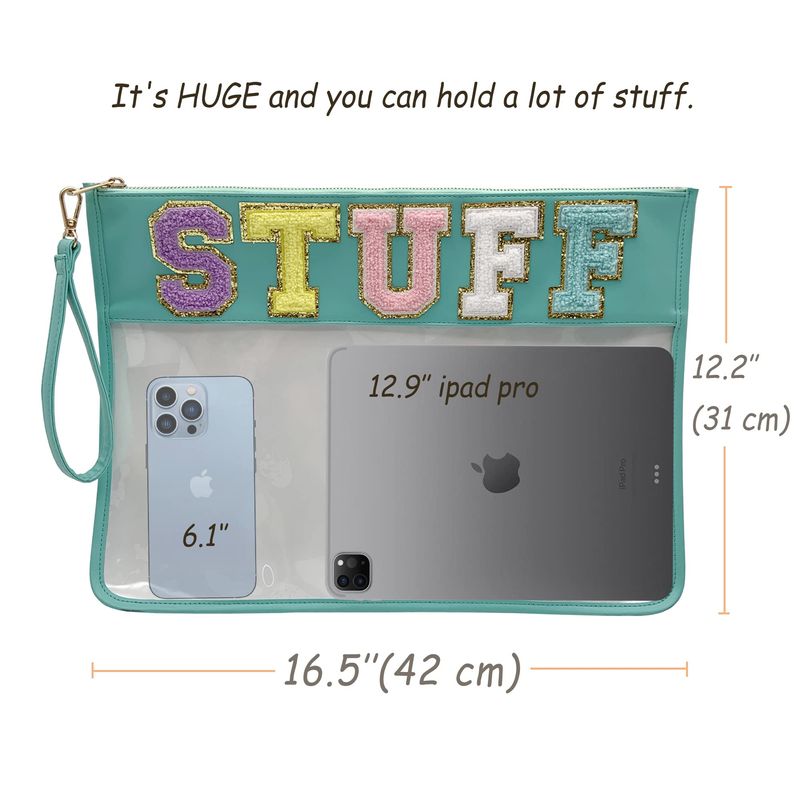 TopTTanBo Bolsa transparente de chenilla con letras, multiusos, transparente, impermeable, para