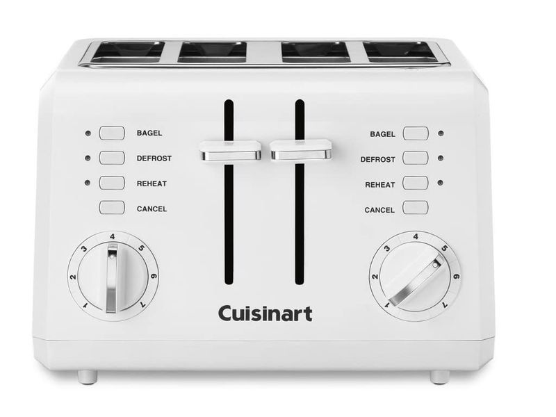 La tostadora clásica recibe una actualización moderna con la tostadora compacta de Cuisinart. Ahorra espacio, colocado de lado o hacia adelante, para adaptarse a cualquier encimera de cocina. Ya sea para hacer mitades gruesas de bagel o panes finos, las ranuras anchas, el carro de alta elevación y los controles personalizados garantizan un tostado uniforme, preciso y conveniente, en todo momento.
