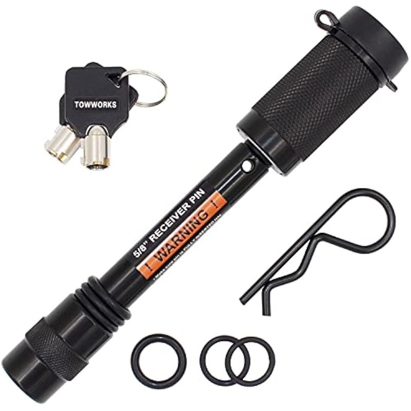 TowWorks 79630 Cerradura de enganche de remolque con llave igual de 5/8 pulgadas con tramo extra