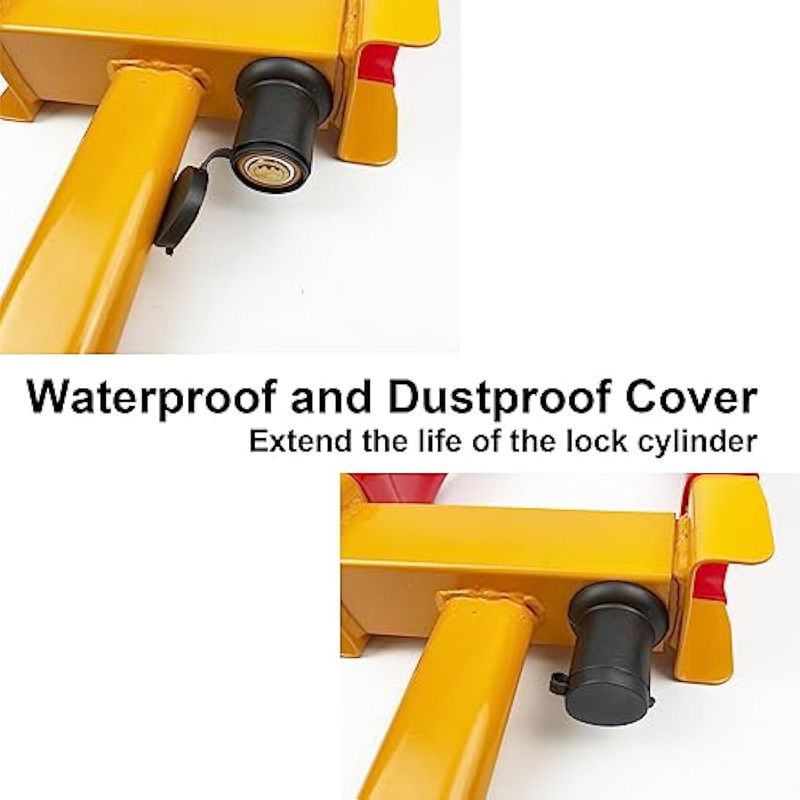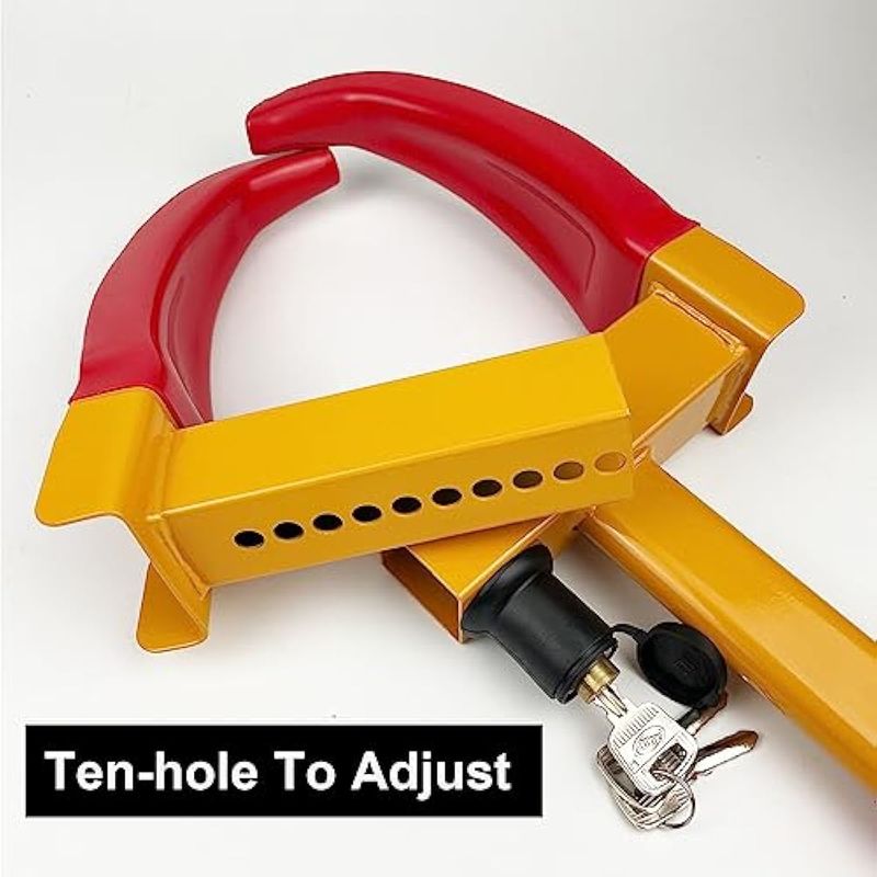 Color visible: el color amarillo y rojo del bloqueo de abrazadera de rueda es ideal para una máxima visibilidad tanto en el día como en la noche. Reduce la probabilidad de ser atacado por ladrones.