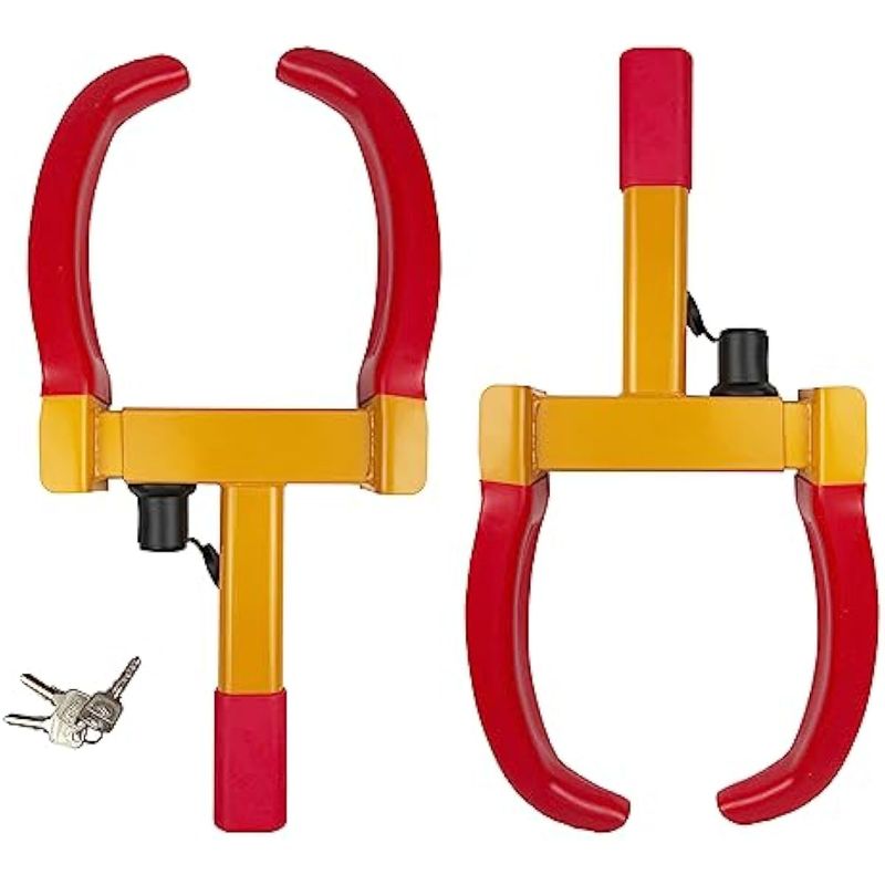 TR TOOLROCK CERRADURA UNIVERSAL DE RUEDA DE 2 PIEZAS, CERRADURA DE ABRAZADERA DE RUEDA DE REMOLQUE UNIVERSAL RESISTENTE, CERRADURA DE RUEDA DE COCHE ANTIRROBO AJUSTABLE CON GRAN COLOR DISUASORIO BRILLANTE PARA AUTOMóVIL, SUV, BARCO, MOTOCICLETA, CARRITO DE GOLF