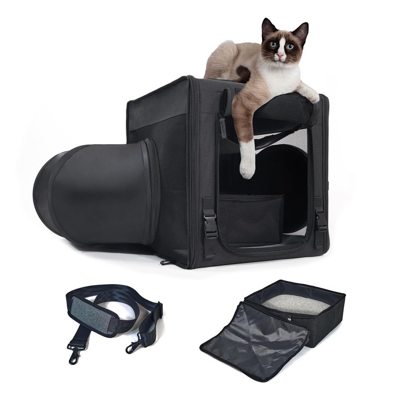 Transportador de viaje para gatos con caja de arena 2 en 1, transportador doble portátil para 2