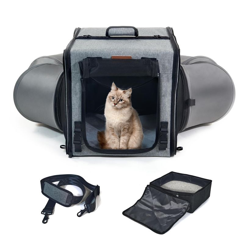 Transportador de viaje para gatos con caja de arena 2 en 1, transportador doble portátil para 2