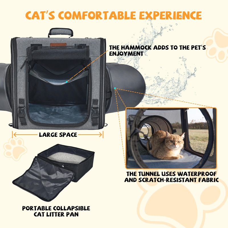 MASCOTASGATOSAccesorios para GatosTransportador de viaje para gatos con caja de arena 2 en 1, transportador doble portátil para 2
