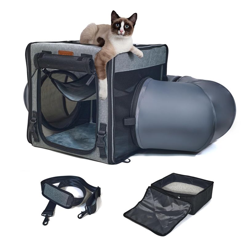 Transportador de viaje para gatos con caja de arena 2 en 1, transportador doble portátil para 2