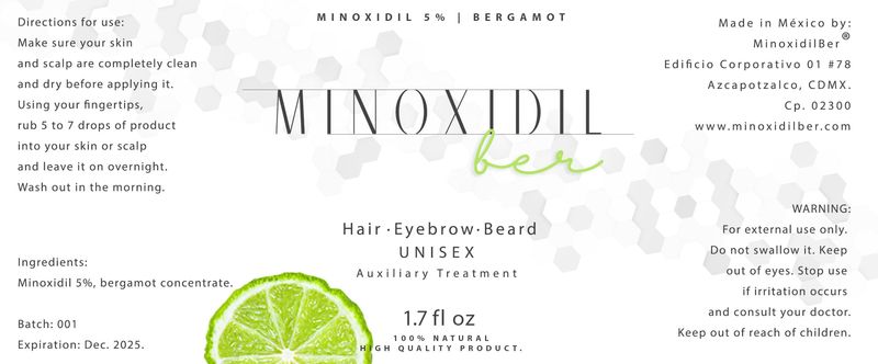 BELLEZA Y SALUDBELLEZA Y CUIDADO CORPORALCUIDADO CAPILARTratamiento para barba y cabello Minoxidil 5% concentrado de bergamota MINOXIDILBER. Para el