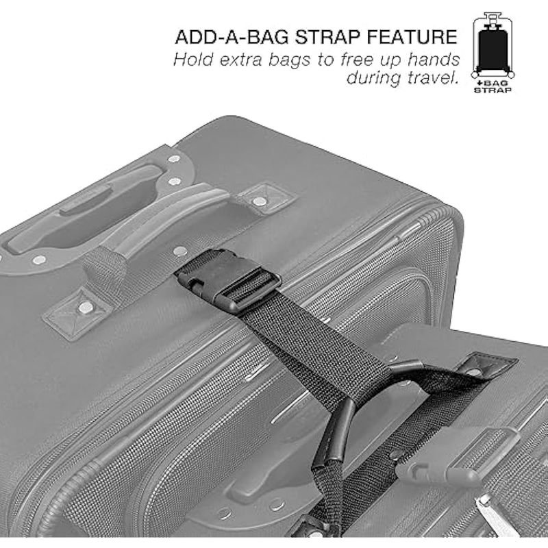 Viaja con estilo con este set de equipaje Amsterdam II de 8 piezas. El set está hecho de poliéster 1200D en 2 tonos. Cada maleta cuenta con capacidad de expansión, sistema de asa telescópica, ruedas de patinaje en línea empotradas, correa para añadir una bolsa y forro interior completo. El bolso de viaje incluye una correa ajustable de hombro con asa acolchada. Los cubos de embalaje tienen tiradores de metal macizo con acabado mate que facilitan la apertura y el cierre. El panel superior de malla permite una fácil identificación del contenido y ventilación. La malla suave no dañará tus delicadas telas. Dimensiones: maleta grande de 29 pulgadas de alto x 17 pulgadas de ancho x 10 pulgadas de profundidad se expande a 12 pulgadas de profundidad. Maleta mediana de 25 pulgadas de alto x 15 pulgadas de ancho x 9 pulgadas de profundidad se expande a 11 pulgadas de profundidad. Maleta pequeña de 21 pulgadas de alto x 13 pulgadas de ancho x 7.5 pulgadas de profundidad se expande a 10 pulgadas de profundidad. Bolso de viaje: 15 pulgadas de alto x 11 pulgadas de ancho x 6 pulgadas de profundidad. Cubo de empaque extragrande: 15 pulgadas de alto x 12.5 pulgadas de ancho x 4 pulgadas de profundidad. Cubo de empaque grande: 13 pulgadas de alto x 10.5 pulgadas de ancho x 4 pulgadas de profundidad. Cubo de empaque mediano: 11 pulgadas de alto x 7.5 pulgadas de ancho x 4 pulgadas de profundidad. Cubo de empaque pequeño: 9 pulgadas de alto x 6.5 pulgadas de ancho x 4 pulgadas de profundidad.