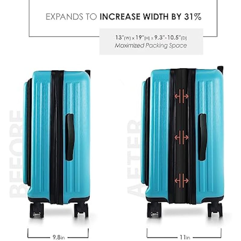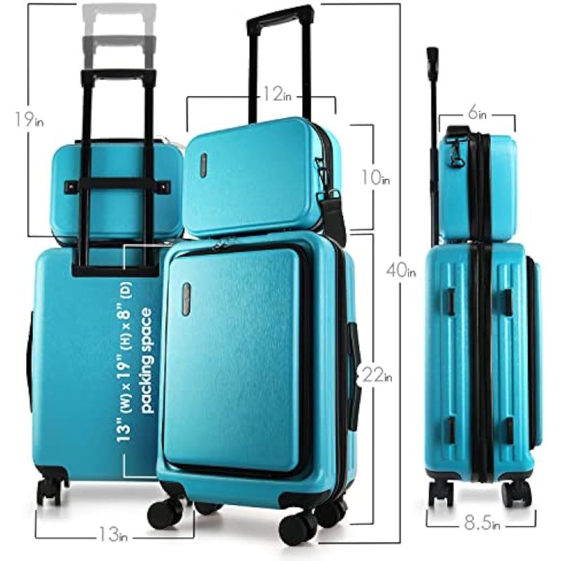 TRAVELARIM EQUIPAJE DE MANO DE 20 PULGADAS 22 X 14 X 9 APROBADO POR AEROLíNEA, MALETA DE MANO CON RUEDAS, EQUIPAJE DE MANO DE CARCASA DURA, MALETA PEQUEñA VERDE AZULADO, EQUIPAJE DE MANO RíGIDO CON BOLSA DE TRANSPORTE PARA COSMéTICOS