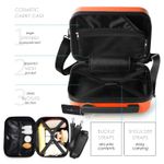 CASO COSMÉTICO: Mantenga los artículos personales y objetos de valor cerca. El estuche de cosméticos cuenta con un compartimento con cremallera, bolsillo de malla y correa elástica que se ajusta sobre el asa de la maleta.