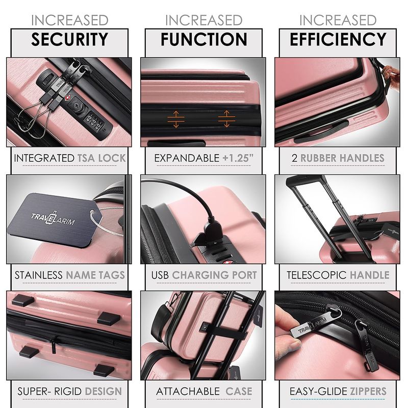 TravelArim Equipaje de mano de 20 pulgadas 22 x 14 x 9 aprobado por aerolínea, maleta de mano con
